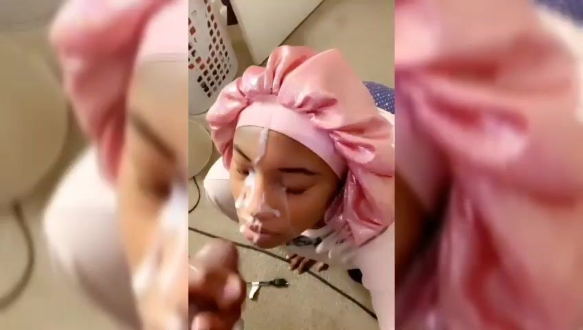Black Beauty's Lips and Tits Covered in Cum